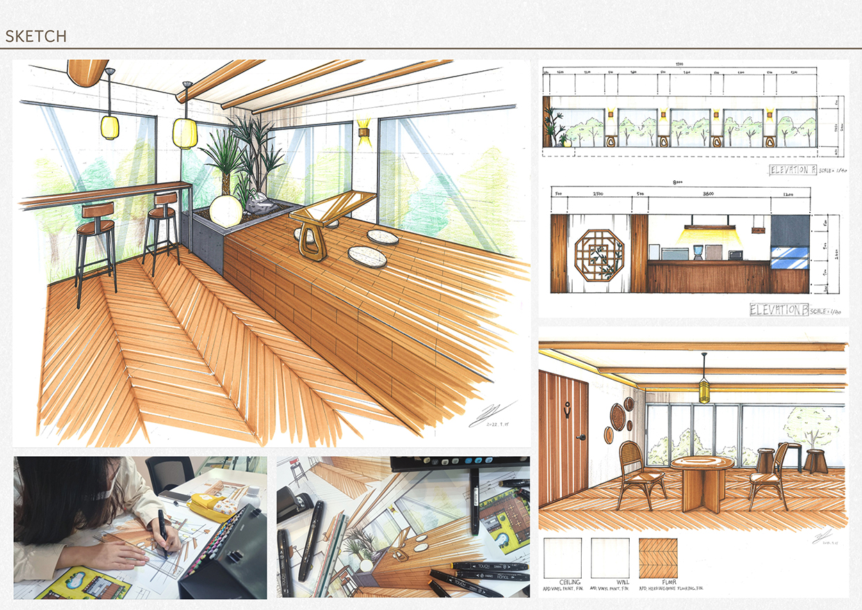 동양의 조화로운 미를 카페에 접목 시키고자 했다.